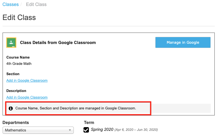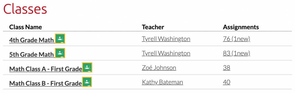 - And finally, the class information managed in Google Classroom is clearly indicated.